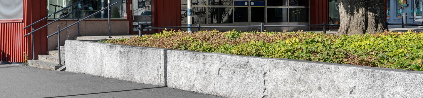 En blockstensmur kommer i ett massivt stycke som ger både funktion och skapar ett stort blickfång. Blockmurarna finns att välja med både råhuggen och modernt blästrad yta. Granit är ett naturmaterial där variationer av ådringar och färgskiftningar ger ett levande intryck och där varje blockmur får ett eget utseende. Detta bidrar till en levande yta för både trädgård och offentliga miljöer. Att använda granit ger en hållbar utemiljö och det är svårt att hitta ett lika gediget byggmaterial.