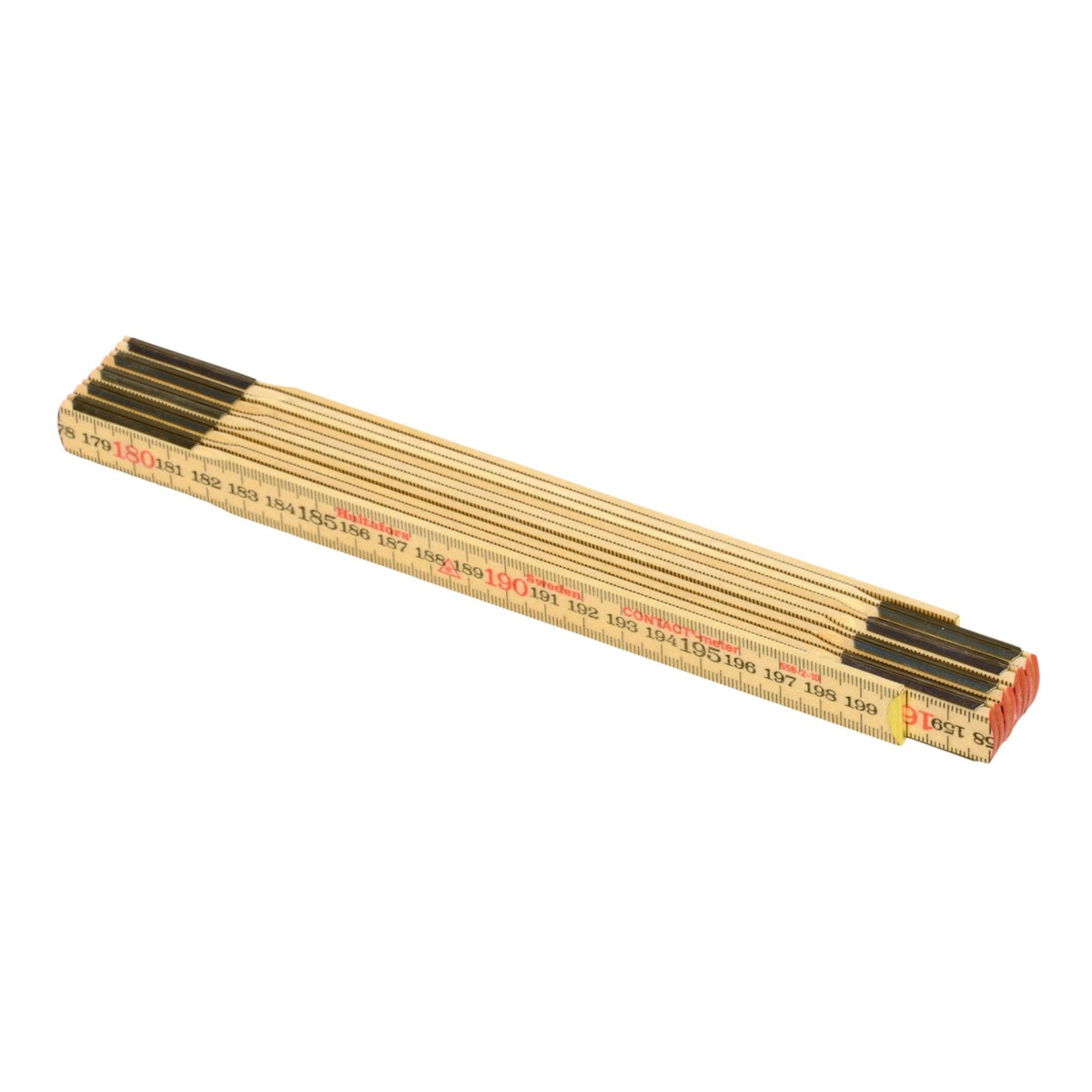 En tumstock men såklart med måtten utskrivna i centimeter. 2 meter lång och en självklarhet i allas verktygslådor och förråd där hemma.